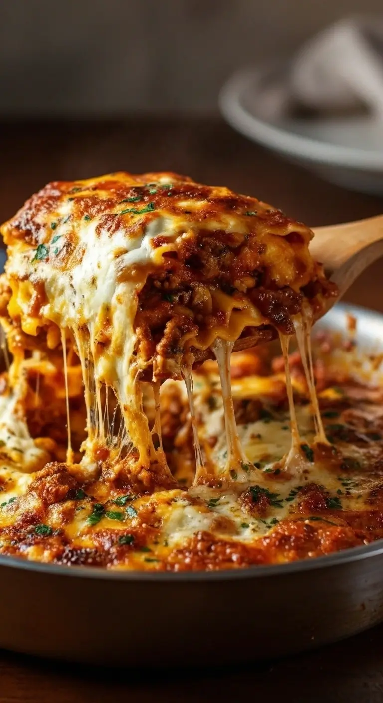 Schalte die Hitze aus und serviere die One-Pot-Lasagne sofort in tiefe Teller. Sie ist am besten, wenn sie noch heiß ist. Reiche sie mit frischem Basilikum, etwas Parmesankäse oder einem grünen Salat auf der Seite.